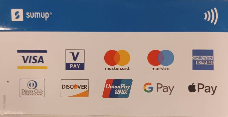 Voor de SumUp betaling (pinnen) vragen we 10 dkk/ € 1,34 extra, omdat er door ons per transactie extra kosten (1,49%) betaald moeten worden aan SumUp.